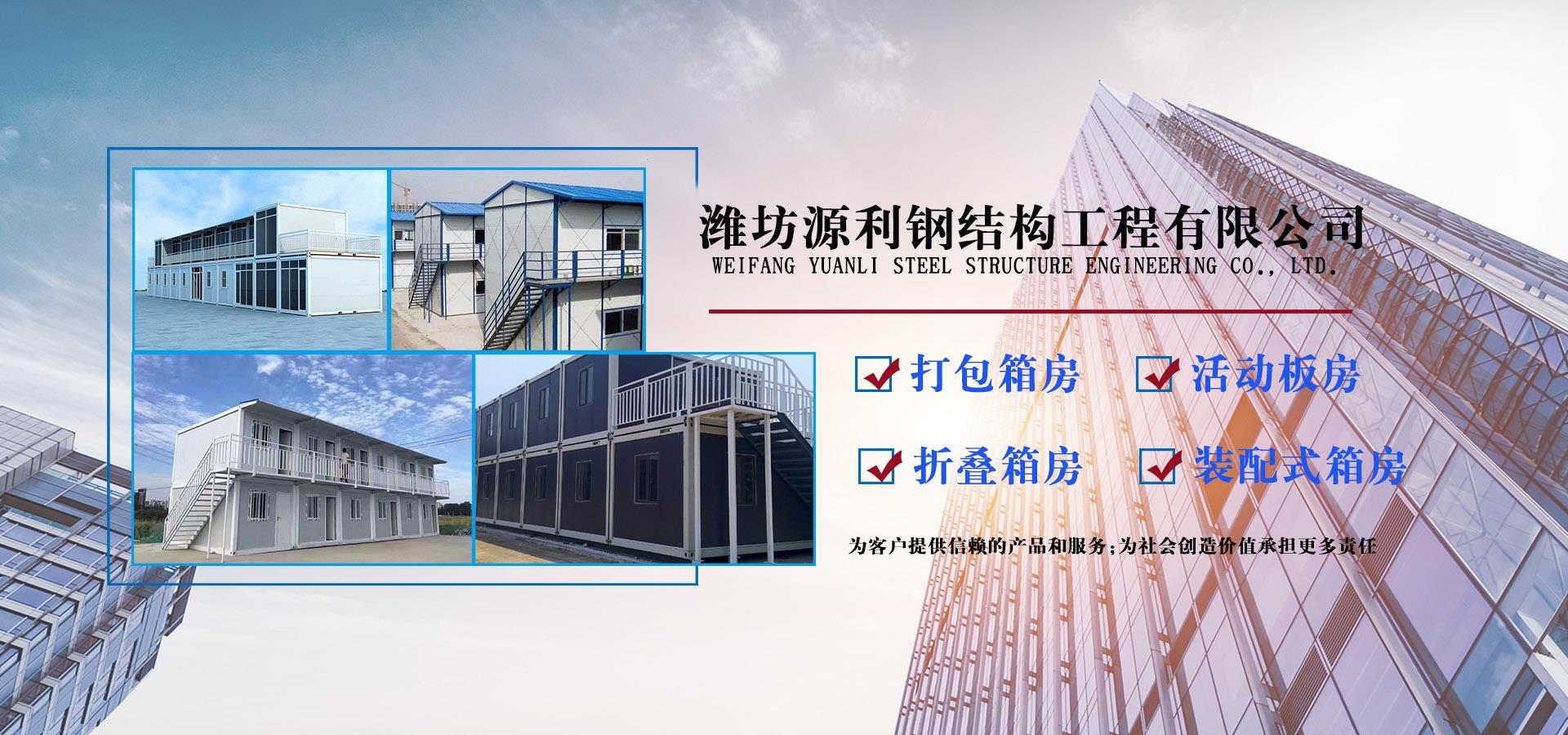 濰坊源利鋼結(jié)構(gòu)工程有限公司成立于2015年,是一家從事活動房屋,鋼結(jié)構(gòu)設(shè)計、制作、安裝為一體的公司。公司坐落于風(fēng)景秀麗的藍(lán)寶石之鄉(xiāng)昌樂開發(fā)區(qū),占地約60畝,年加工生產(chǎn)能力到40萬平米,現(xiàn)已發(fā)展成本地較大的鋼結(jié)構(gòu)企業(yè),同時也已跨入集成房屋研發(fā)、推廣企業(yè)行列。公司配備了全套的箱房流水線生產(chǎn)設(shè)備,包含了全自動冷彎成型設(shè)備、流水自動涂裝線、沖壓型材生產(chǎn)線以及全套的配套設(shè)備,標(biāo)準(zhǔn)化、模具化生產(chǎn)加工,年生產(chǎn)5000套打包箱,產(chǎn)品保障。 公司主要產(chǎn)品有:鋼結(jié)構(gòu)工程加工、制作、安裝;各類活動板房、打包箱房、裝配式箱房、折疊箱房、圍擋、料棚、異型H型鋼、屋面板、墻面板、樓承板,C型鋼,Z型鋼;馬路隔離護(hù)欄等相關(guān)產(chǎn)品。